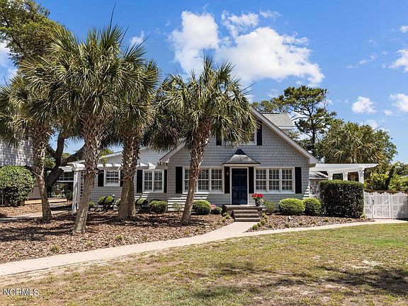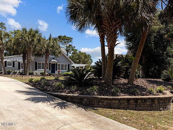 Turn onto Acorn Ct. and you will find an adorable coastal cottage nestled under the palm trees on the banks of a deep water canal. This home is typical of the cottages once dotting the shores of the inner and outer banks of NC. Its architecture is synonymous with Cape Cod and similar homes found in the coastal Northeast. It has individually hand-dipped stained cedar shingle siding and dormers filled with glass and windows to let in the salt drenched sunlight. With the Southern facing water orientation, every room has wonderful light throughout the day. The backyard water view enjoys the cool SW prevailing summer wind, while warming you in the wintertime blocking the cooler NE dominant wind. The home is comfortable, cozy and open with volume ceilings in the main floor living area. It boasts 3 BR and 2.5 BA with the primary suite on the main floor. Walk outside and you will discover what draws you to this island place. You will find a pergola covered patio overlooking a magnificent, raised garden bed for a true farm to table culinary opportunity just outside your office. What better way to enjoy your remote work while at the beach. Take a siesta by slipping into the hammock under the palm trees while lulled asleep by the wind-blown palm fronds. Boating is easy and pleasurable with a new dock, boat lift, and floating dock with ramp. In the evening, hop on your boat and enjoy a relaxing cruise around the canal, or opt for dinner out by boating to the many fabulous restaurants. This area has miles of pristine beaches where you might see wild horses that are descendants from the earlier Spanish sailing fleet PKS has incredible amenities including private beach front access with parking, boat ramps, kayak launches, marinas, sound front parks, playgrounds, and picnic areas. All are accessible by golf cart if you tire of driving your conventional vehicle. This property would make a perfect home base for all that the Crystal Coast has to offer. Schedule you showing today.