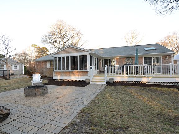 Great Harbors where all the summer fun is right at your fingertips! Just around the corner you will find a fabulous Association Club house with a lovely water view bayside pool, tennis courts, playground, and association docks. This move in ready ranch style home is designed for the Cape Cod lifestyle. The home offers 3 bedrooms, 2 baths, a beautiful sun room, a partially finished basement all with many updates. Upgrades include central air, garage, new deck, patio with fire pit and outdoor shower. The over sized master suite with wood floors, vaulted ceiling, skylight and ceiling fan is the perfect getaway. The open kitchen with large dining area is adjacent to the spacious living room which has sliders to a screened in 3 season porch and to a new deck to are nicely arranged for entertaining. The lower level is partially finished for the extra overflow of guests or set up a fun play area for all ages. The fully irrigated private back yard with fire pit complete the picture.