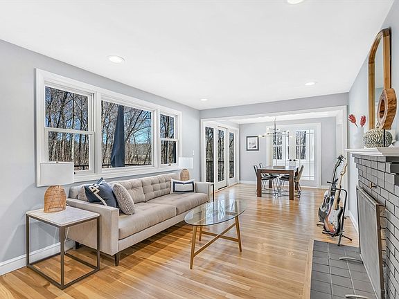 PRIME CUL-DE-SAC LOCATION WITH WOODLAND VIEWS! Abutting incredible conservation land, this sunny four bedroom Colonial is a site to see! The 1st floor is updated & open with a bright, renovated kitchen & hardwood floors throughout! The centrally located living room offers a cozy atmosphere with a wood burning fireplace, perfect for family gatherings & memory making. The kitchen is timeless & elegant with light stone countertops, white cabinets updated by the current owners & a center island. The sunroom is radiant with natural light & could also make for a terrific home office! Sliding doors connect the dining room to the large back deck. Simply perfect for entertaining! Never miss a relaxing moment outside to gaze at the natural surroundings! The 2nd floor hosts four bedrooms & a full bath! The finished lower level could make a fantastic playroom or game room! Close to Verrill Farm, Willard Elementary School & White Pond, the local's Walden!