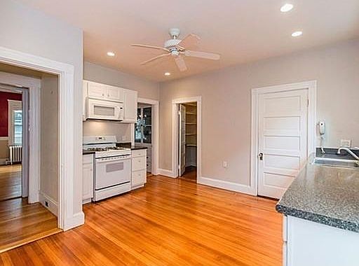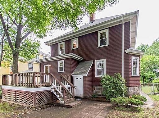 Exceptional Parkway location! Massive hip-roof colonial with many classic details. Original doors, knobs and lighting fixtures. Covered front porch. Step into a spacious foyer, with study to the right and living room with pocket doors into dining room on the left. Beautiful fireplace mantel and built-in. Refinished hardwood floors throughout. Updated kitchen with recessed lighting 2010. New heating system and hot water 2012. Roof 2002. This property is in move in condition but has so much potential for the modern family...current pantry and laundry on the 1st floor give great option for a half bath addition. Also, the 2nd floor layout has the space to add a true master bath, more closet space and laundry. Walk up 3rd level also has another bedroom and tremendous possibilities. Lovely back yard space with deck. Commuters delight...walk to nearby train station. Enjoy dining or shopping in both Roslindale Village and nearby W. Rox. A peaceful tree lined street will welcome you home!