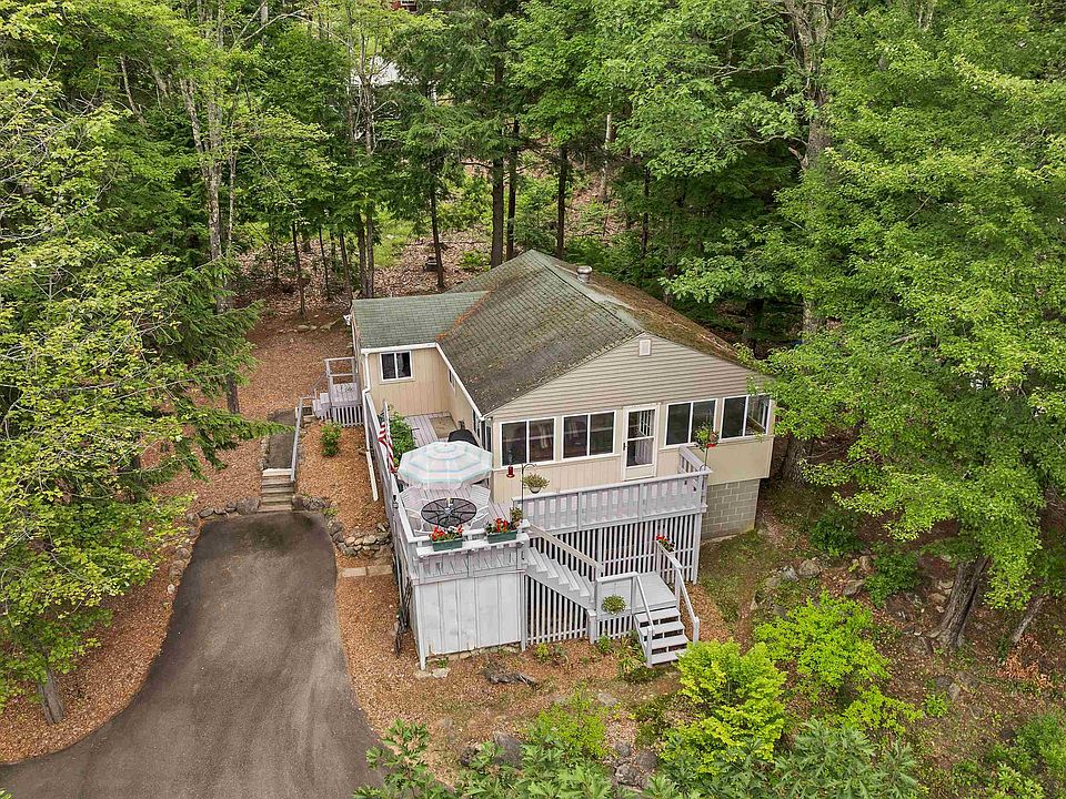 This well-maintained property consist of a .4 acre grandfathered vacant waterfront building lot with 90' of WF frontage located across the road from the existing cottage which is set on two merged lots. In addition to the private w/f, you'll have access to 5 association beaches on both Hills Pond and nearby Sunset Lake. Features include open ceilings, enclosed porch and wrap around deck (28'X8'). Many of the windows have been replaced. Previous owners had utilized existing drilled well and occupied the home year- round. The current owners have only used it seasonally with association supplied water. Sellers to occupy house till 9/30/25. Purchasers may elect to close early with a rent-back agreement. OPEN HOUSE SATURDAY 7/12 11:00 a.m. to 1:00 p.m.