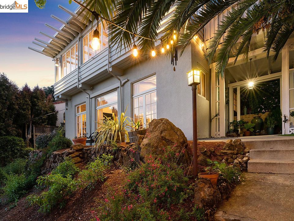 Magnificent views from this stately home on coveted Alvarado Road near the famed Claremont Club & Spa. A rich history and the site of soirees with important historical figures in the grand ballroom of this extraordinary home! Upstairs find a spacious kitchen, family & dining room w/ breathtaking panoramic bridge, city and bay views, plus a luxurious primary suite with private deck and home office or au pair quarters. The top floor features 2 bedrooms, 2 bathrooms plus a family room/home office. Another plus room houses a kitchenette which could be converted back to a bedroom or other use. The flexible layout is perfect for entertaining, working from home and or accommodating larger families. Beautifully landscaped terraced garden with sunny flat yard is perfect for al fresco dining & relaxing on the main level, as well as on decks on both upper floors. Many upgrades include owned solar, elegant bathrooms, a new two car garage and beautiful landscaping. Take the Eucalyptus Path to Claremont Spa, Berkeley Tennis Club, favorite shops and eateries; Transbay express bus to San Francisco, Claremont Canyon trails, not to mention close proximity to Elmwood and Rockridge amenities and easy transportation.