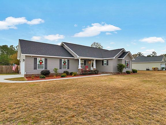 Welcome home to 103 Amelia Ct. This immaculate home still feels new and is located in a well established neighborhood with NO HOA! Situated on a quiet back street with private owned pond loaded with fish! This stunning home site sits on almost an acre lot with plenty of room for all of your toys! Open floor plan with crown and casing throughout, recessed lighting, and more! Great kitchen space, stainless steel appliances with lots of cabinets and storage. Master bath features his + her closets, double vanity, garden tub, and separate shower. Large covered front and back porches . Back porch is wired and ready for you to add outside speakers, with additional extended back patio space also. Huge back yard, privacy fence with walk through, drive through, and pop out gate in back, and 20X21 carport with concreted slab. Located out of the hustle and bustle but still close proximity to schools, restaurants, and shopping! Call today!