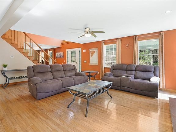 Escape to your own rural haven w/ this impressive 3-bdrm, 2.5-bath home situated on over 5 acres of land! This property truly offers the perfect blend of tranquility & comfort. Step inside to discover a farmhouse atmosphere w/ spacious rooms and warm natural light. The open concept main level features an abundance of storage in refreshed kitchen boasting new quartz c-tops & large center island! Combo dining/living room is ideal for hosting your next gathering, a coveted gas fireplace is the focal point flanked by stunning windows! Main level has an add'l den/formal dining, mud rm, office space, half bath AND laundry - WOW! Upstairs you'll find that the primary bdrm offers a peaceful retreat w/ an oversized en suite bathroom & spacious walk-in closet! Two add'l large bdrms w/ generous closet space & full bath finish the second level. Need more? The walk-out partially finished basement offers add'l living space w/ access to patio/pool area for outdoor enjoyment! Welcome to 103 Ames Rd!