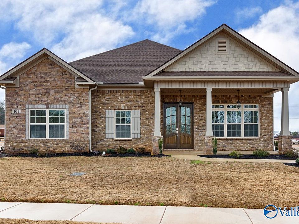 This Elegant Custom Home is move in ready! This home has some incredible features and is located inside Madison City! Sweet little craftsman bungalow featuring 3 covered porches-The MIMOSA GRAND is beautifully decorated with neutral colors, hand-scraped hardwood floors, tile shower, painted cabinets, quartz, along with 10 & 12ft ceilings, 2 car garage, bonus room, plus so much more!