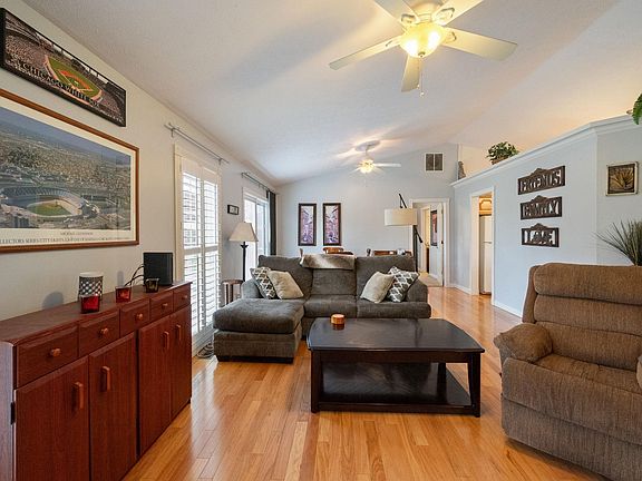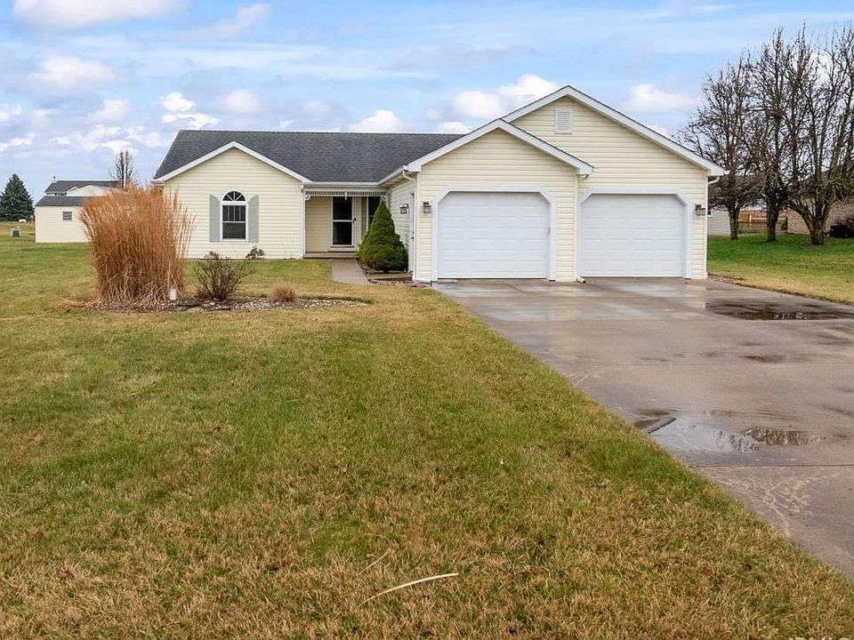 This charming home offers a serene retreat in a quaint subdivision with a picturesque country setting. Nestled on just under half an acre, privacy is ensured by a surround back yard fence creating a peaceful oasis for relaxation and enjoyment. Upon entering you'll find yourself in a cozy yet spacious environment with three inviting bedrooms, split floor plan and two spacious bathrooms. The heart of the home is the eat-in-kitchen, perfect for gathering with loved ones and enjoying delicious meals together. The open concept offers vaulted ceilings, plantation blinds in the great room. Step outside onto the back patio and discover a delightful pergola, providing the ideal spot for outdoor dining or simply unwinding with a good book. The two sheds provide convenient extra storage for tools, outdoor equipment or seasonal items. Recently updated with a filtering water system and reverse osmosis that makes the water quality pure and refreshing. Whether you're seeking a peaceful retreat or charming place to call home, this property offers the perfect blend of comfort, convenience and country living.