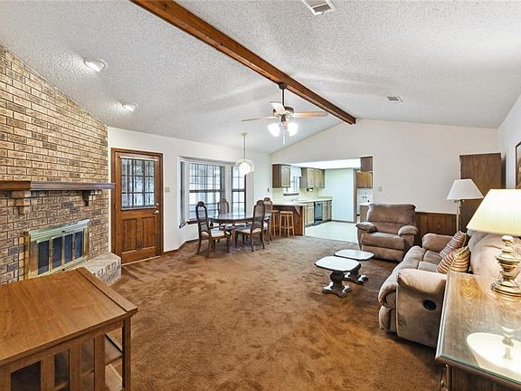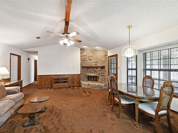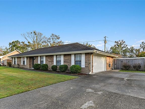 Spacious all brick home w 3 bedrooms/2 full baths w wood burning fireplace and nice sized laundry room. Home sits on a corner lot with an attached 2 car garage & a 20x10' screened porch. S/S appliances, ceiling fans throughout & L/R & Den w cathedral ceilings. Home needs some updates but is clean and livable. Roof is approximate 14 years old. Newer A/C system. Low flood insurance. Most of the yard is fenced.