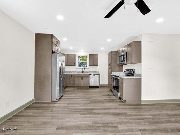 This beautifully renovated home is move-in ready and offers modern updates throughout. From the moment you step inside, you'll notice the warm and inviting atmosphere created by luxury vinyl plank flooring, recessed lighting, and ceiling fans that enhance comfort in every room. The heart of the home is the updated kitchen, complete with upgraded stainless steel appliances and ample cabinet space, making meal prep and entertaining effortless. A conveniently located laundry room off the kitchen adds everyday functionality. Both bathrooms have been tastefully remodeled with lovely vanities, upgraded faucets, and stylish fixtures, providing a spa-like feel. The home's thoughtful upgrades extend beyond the interior, ensuring every detail has been carefully attended to. Outdoors, you'll find a large private backyard perfect for gatherings, gardening, or simply enjoying quiet evenings. A carport provides sheltered parking, while the home's location places you close to schools, shopping, and just a short commute to all area military installations. This property blends modern upgrades with everyday convenience, making it an excellent choice for those seeking comfort, style, and accessibility. Don't miss your chance to call this remodeled gem your new home!