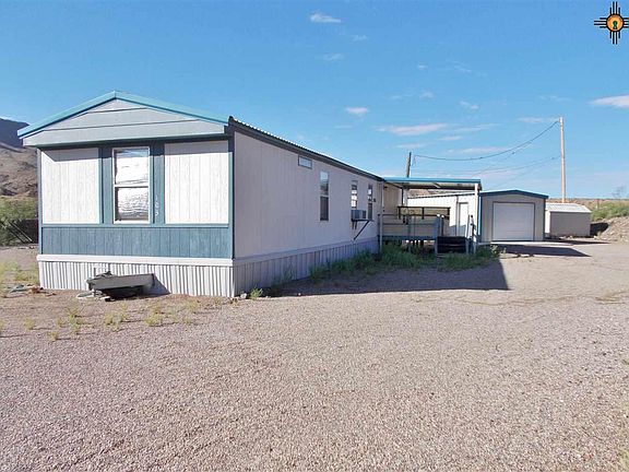 Looking for a home priced right!!!! Here it is! This 1986 MH, 14 x 70, has 2 bedrms / 1 bath, 12 x 17 metal roof over deck, 1-car, 16 x 22 detached garage with concrete floors & electric & a 10 x 12 metal shed..all contacted with a concrete sidewalk. There is room to build another deck too! Well maintained & great views! Great starter home or one for retirees. Close to the Rio Grande River, downtown TorC's Spas/bathhouses, cafes, artist studios, shopping, golf & fishing & minutes from Elephant Butte State Park and Lake, PRICED TO SELL!!!