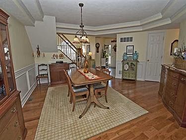 First and Second floor master suites!Island kitchen with granite counter tops,newer hardwood floors in dining room, hall and first floor bedroom.Trey ceiling in dining room with crown molding,fireplace in living room with neutral carpet,2nd floor loft area with skylights. 2nd floor oversized master with 2 walk in closets and bath featuring jet tub double bowl sinks and more!mud room off the kitchen and garage with laundry area.private patio area!