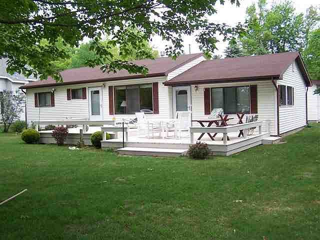 THIS IS THE HOME YOU’VE BEEN LOOKING FOR…READY TO MOVE INTO. LOCATED ON A QUIET STREET WITH A WOODED LOT AND A WONDERFUL WATERFRONT VIEW. THE HOME HAS MANY UPDATES AND IS IN EXCELLENT CONDITION. 3 BEDROOMS AND 2 BATHS FOR LARGE FAMILY OR FRIENDS. CHARMING GAS FIREPLACE FOR WINTER NIGHTS. THERE IS A BRIGHT INTERIOR WITH A COMBINATION OF DRYWALL AND KNOTTY PINE WALLS AND SOME CEILINGS. NICE SIZED LAUNDRY ROOM WITH WASHER/DRYER. MAINTENANCE FREE EXTERIOR. 13 X 32 DECK ON LAKESIDE AND PATIO ON ROAD SIDE. SANDY BEACH FEATURES A VIEW OF A LOVELY PARK ACROSS THE BAY. ATTRACTIVE HOMES NEARBY. FOR THE GUYS, 24 X 30 GARAGE WITH ELECTRIC OPENER. THIS HOME SAYS “RELAX, PLAY AND ENJOY.” CLOSE TO TOWN BUT FAR ENOUGH AWAY. VISIT THIS ONE AND BE IMPRESSED!
