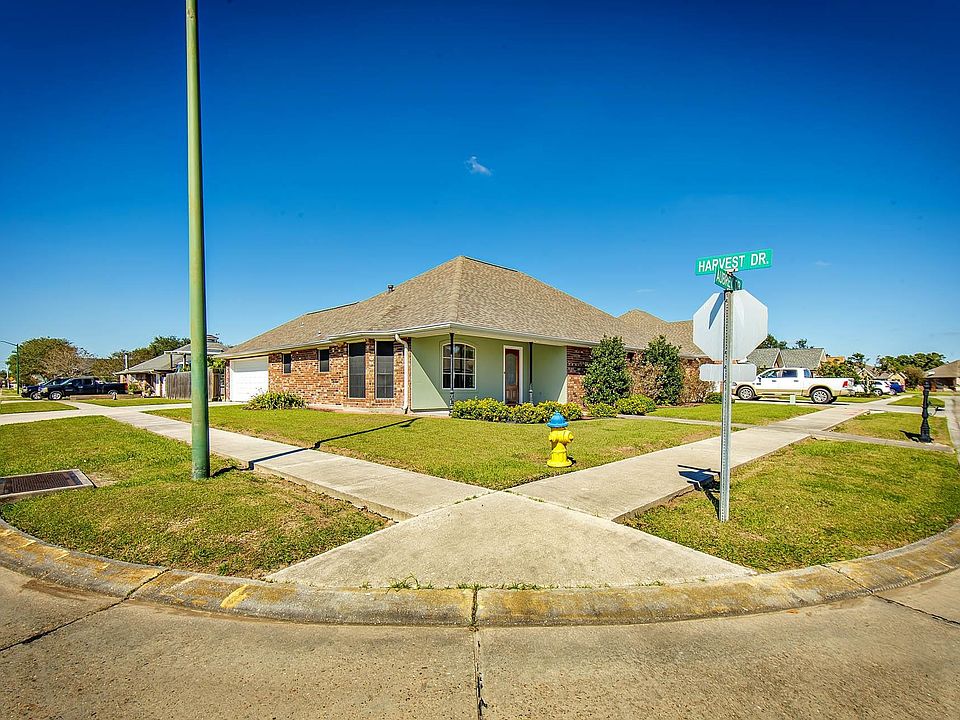 Charm, comfort, and convenience all meet here! This beautiful brick home with a splash of stucco sits proudly on a corner lot in Sugar Mill Place—within Mulberry School District and Flood Zone X. Step inside to find an inviting open floor plan with vinyl plank flooring, crown molding, recessed lighting, and an electric fireplace framed by wood accents and decorative cypress barn doors. The kitchen blends style and function with granite countertops, custom cabinetry, decorative backsplash, stainless steel appliances (refrigerator negotiable), and a spacious island with bar seating option. The primary suite feels like a retreat with its custom built-out walk-in closet, soaking tub, oversized shower with multi-head shower system, and double vanities. Enjoy evenings on the covered back patio with outdoor lighting and a TV mount—perfect for game days or relaxing nights. An attached, powered workshop, and fenced yard with extra parking outside of garage make this home as practical as it is beautiful. Roof replaced in 2021 and termite contract in place! Priced below recent appraisal!