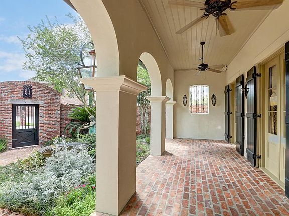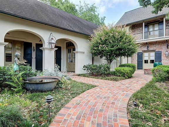 If you could design a home for the ultimate in location, luxury and ease of livability this would be the home you designed. This 4 bedroom 4.5 bath home in the center of Lafayette has tons of amenities. The beautifully landscaped front court yard with a New Orleans flair is your first taste of how every detail was planned in this home. The sound of the fountains, the aroma of numerous blooming flowers all invite you to step inside. Just past the front hall is a formal living room with wall hung tapestries, real gold leaf accents and stacked crown molding. Next to it is a very large formal dining which has a butlers pantry which has a wine cooler and plenty of general storage and wine storage.The kitchen and den are just across the hall. The kitchen has top end Thermador stove, refrigerator/freezer and separate ice maker. There is a large island with pot drawers, great counter top space and storage in the upper and lower cabinets throughout the kitchen. The pantry has space for food storage as well as space to store larger pots, serving bowls and larger kitchen items. The den is anchored by a masonry fireplace that is wood burning or gas log burning whichever is your preference. There are 2 bedrooms down and two up. The massive master bedroom which is very private due to its location down a long hall is tastefully finished with real venetian plaster walls which are smooth to the touch (due to a waxing technique). All custom drapes, sheers and block out shades will remain. The master bath has heated floors a large vanity area, walk in shower, whirlpool tub. The closet has of space with a whole section of drawers, shoe storage, hanging area and general storage area. The second bedroom downstairs has its own bath. Laundry room is spacious with space for extra freezer or refrigerator. The section under that stairs has a small very whimsical childs kitchen area, so the toys can be out of sight. Upstairs there are 2 bedroom which both have balcony access and walk in closets. One room has an en suite bath, the other bath is in the hall which would also serve the large bonus room which is furnished with a pool table (that will stay with the home). There are two very large walk in storage closets in the bonus room, a desk area and linen closet in the upstairs hall with good storage. The 2 car garage has two very large storage closets and upper and lower cabinets and counter top for additional storage insider the garage. The property has an extra lot which is landscaped, fully fenced with a beautiful solid brick fence for ultimate privacy and your living pleasure. There is a childs play structure that will remain. So, lets explore the other features that add value and comfort. 100 year old heart pine floors, 2 x 6 and 2 x 8 stud walls, (2)-100 gallon water heaters, extra insulation in attic, real copper gutters, surround sound system and speakers in master bath, bedroom, den, dining, formal living and in the front courtyard area, full house generator, buried watering system for the landscaped areas, functional shutters and in the front courtyard there are hookups for a gas grill and plumbing for an additional fountain if desired. This is complete package ready for the new owners to mo