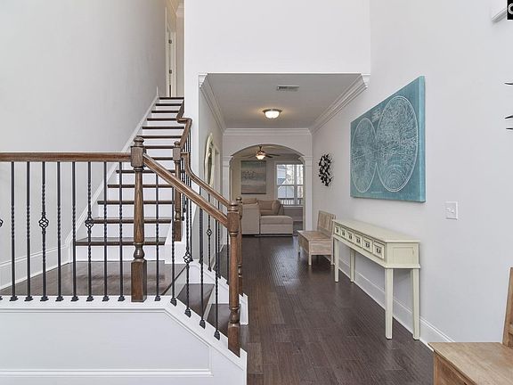 Immaculate, cul-de-sac, home on large corner lot located in the desirable Palmetto Shores with Lake Murray access. Gorgeous eat-in kitchen w/ professional grade appliances, breakfast bar, grand center island & open view to family room with Bluetooth sound system/ceiling speakers. Oversized master ensuite on 2nd level with tray ceiling, quartz counters, upgraded cabinets & 9'x15' walk-in closet. Formal dining room with coffered ceiling, upgraded flooring all downstairs, stash center/flex room in the mudroom. Lots of natural light in Sunroom. Bonus room up w/ window seat. Laundry room features wash sink. Monkey bar shelving system in the garage! Entertain on the enlarged deck overlooking fenced-in and well maintained backyard. Community Boat Storage. Extended driveway perfect for kids to ride bikes, hoverboards, etc. Excellent community and close to the neighborhood pool.