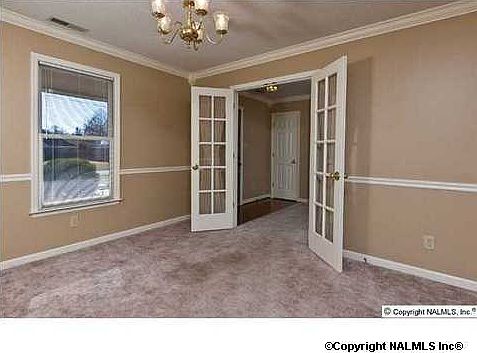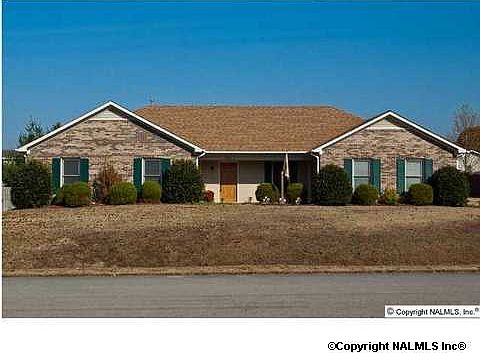 Quiet Cul-De-Sac living! This 3 bedroom 2 bath brick home is situated on a .38 acre lot with a spacious 2 car side entry garage. Wonderful home featuring Great room with trey ceiling and wood burning fireplace, bonus room located off the bright and airy eat in kitchen with lovely bay window. Formal dining room. Master bedroom has a glamour bath with dual vanities, whirlpool tub and separate shower. Walk to Phillips park ball field, walking path, library and community center. Call: 256-468-1527