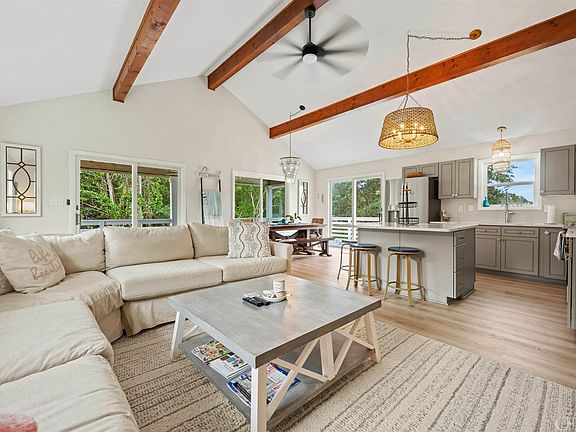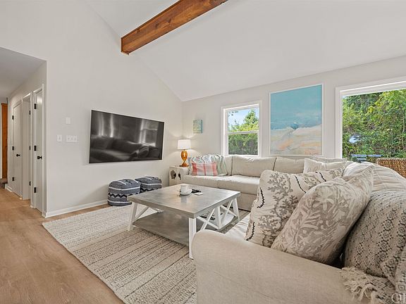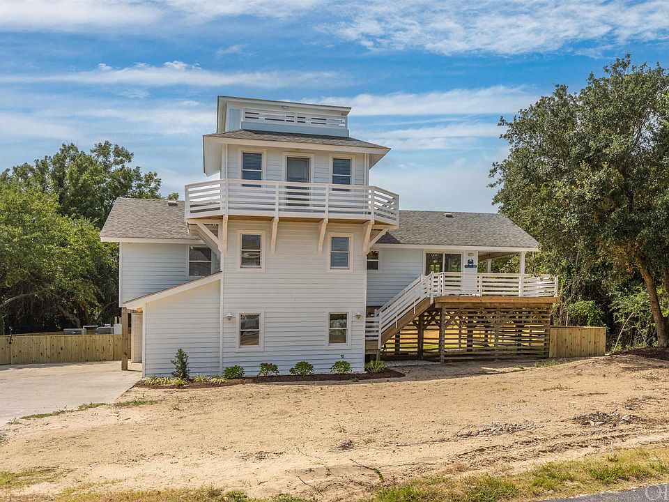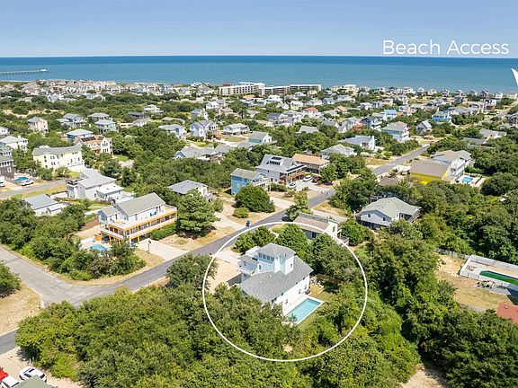 Look no further than this adorable, turn-key ready coastal cottage you've been waiting for situated on a highly elevated lot in the heart of Duck, NC! This charming 4 bedroom, 3.5 bath home has been recently updated and tastefully appointed from top to bottom with new flooring, walls, ceilings, fixtures, furnishings, and decor throughout. With the addition of a private pool, sod and irrigation, a new garage and fresh exterior paint, this property is ready to make the perfect second home, vacation rental, or full time residence! Enjoy ocean views and stellar sunsets from the ships watch that offers two daybeds, a wet bar, and private deck. A spacious master en suite features a wraparound deck with bench seating to soak up the sunshine and warm ocean breeze, a walk-in closet, and updated bath with new dual vanity and a custom tiled shower. On the second level, a king en suite with updated vanity, floors, and fixtures, two bedrooms, a full and half bath, and den with sofa sleeper and built-in shelving. An open concept living room with cathedral beamed ceilings, a wraparound couch, breakfast, island, and dining seating, and direct access out to the spacious sun and covered composite decks surrounding. Host with ease from the recently upgraded kitchen boasting quartz countertops and new stainless steel appliances. Take advantage of added storage space and a love seat for relaxing on the ground level, a carport, garage, workshop, outside shower, and laundry. Enjoy the convenience of the beach access, Duck Waterfront Shops, and restaurants a short walk or bike ride away!