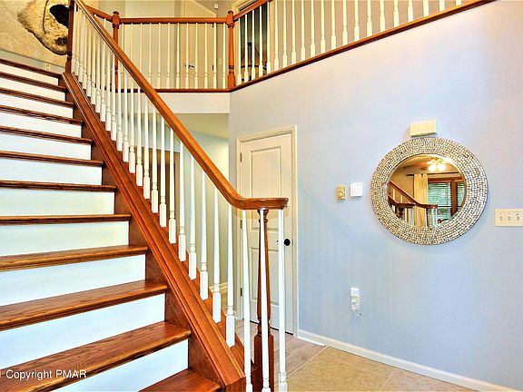 Welcome to your Woodland Oasis in a amenities filled Community. This home is designed with European Style. 4 Large Bedrooms w/ 2 and half bathrooms & separate Laundry Room. Bright open space combines large Living Room, Family Room w/ propane Fire Place. The Kitchen has solid oak cabinets & island w/ quartz counter-top, large pantry w/ Stainless Steel appliances. Spacious Dining Area w/ sliding doors that bring you to the over-size composite deck and stone patio w/ privacy to enjoy. Owner suite w/ vaulted ceiling and rustic barn doors to walk in closet and gorgeous Private Bathroom w/ a deep free standing bathtub & separate shower behind glass door. Paved driveway, pavers for the walk way. 2 car garage has 12' ceiling. Basement offers 9' celling, Wine Cellar & Gym