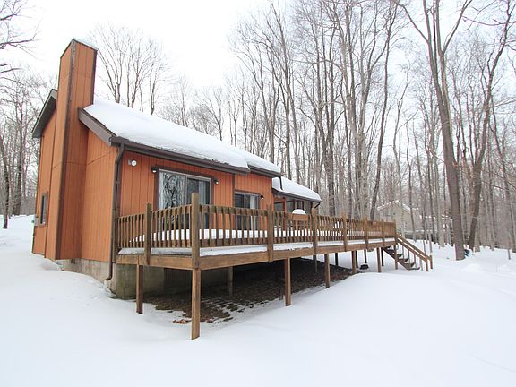Enjoy all of nature's privacy! With a bedroom and bathroom on the main level, loft sleeping area with jetted tub, spacious front deck and screened porch combo, livingroom fireplace, and updated kitchen, you can escape it all and enjoy Sky View Lake's amenities. Close proximity to Promised Land State Park and an easy drive to Lake Wallenpaupack!, Beds Description: 1Bed1st, Baths: 1 Bath Level 1, Eating Area: Dining Area