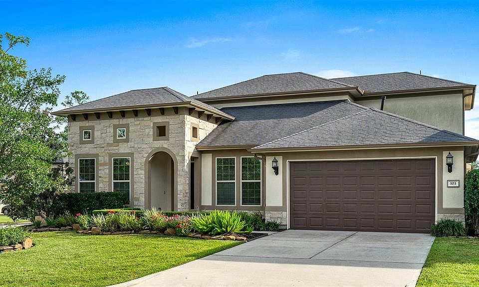 Beautiful home in desirable Shenandoah! Fabulous pool with extra decking for relaxation. Gorgeous hand-scraped real wood floors throughout the formal dining room, family room, breakfast room, and front bedroom/study. The family room is open to the kitchen, granite countertops, stainless steel appliances, breakfast bar, coffee bar, and walk-in pantry. The downstairs master has an en-suite bath with dual sinks, garden tub, separate shower and two walk-in closets. Upstairs has a spacious game room, large bedroom and full bathroom! House & Garage freshly painted. New carpet in Master and Upstairs. This is a corner lot with fully fenced side and back yards and a covered patio! No front neighbors. Cul-de-sac. Easy access to I-45 with tons of shopping and restaurants just minutes away!