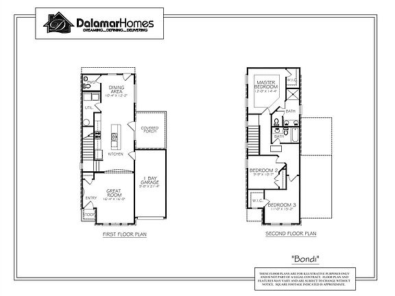 *Affordable Custom Homes* The "Bondi" by Dalamar Homes- Large entry foyer with Art Niche, Gourmet Kitchen including Granite,Built in Stainless Steel Appliance Package w/Gas Cooktop, 10' Ceilings on First Floor, Radius Corners and Arched Openings Throughout, Master Bedroom up, Covered back porch, Laundry Room, Low Maintenance Community. Call for current Builder Incentives and Marketing Packet.