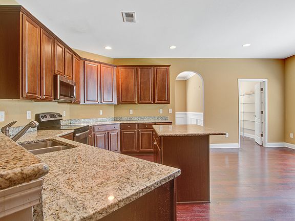Welcome to the ''Sinclair'' offering 4 bedrooms and 3.5 bathrooms, including a spacious bonus room upstairs (12' x 21') that can serve as a fourth bedroom or flex space. The open-concept main level features a large family room with fireplace, a kitchen with center island, granite countertops, 42'' cabinets, GE stainless steel appliances, walk-in pantry, breakfast bar, and a separate breakfast room. Hardwood floors run through the foyer, dining room, kitchen, breakfast room, pantry, and family room, while all bathrooms and the laundry room feature ceramic tile. The dining room and foyer include detailed trim work, and the foyer is accented with a lighted niche.Oversized secondary bedrooms (13' x 10') offer plenty of space, and 2'' faux wood blinds throughout! Must see!