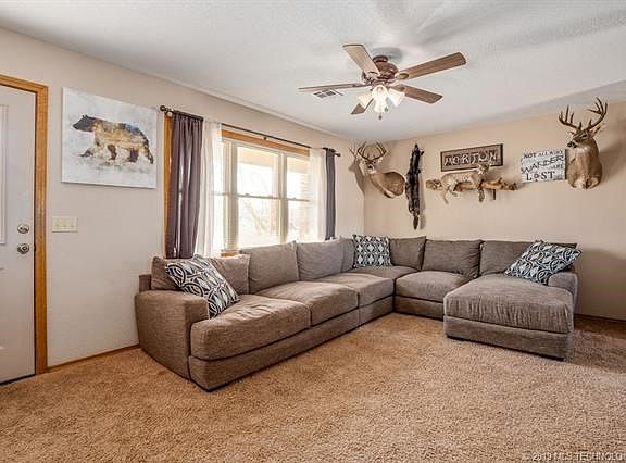 This cozy country home offers 2 living rooms, one living room is oversize with hook up for wood stove if desired, open kitchen to 2nd living room, custom bar in kitchen, 4 bedrooms, 1-1/2 bath, oversize laundry room, metal roof, all on one acre corner lot