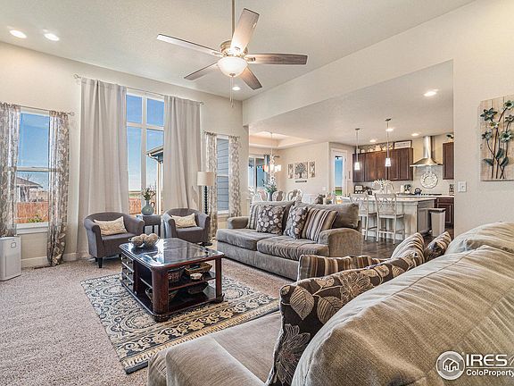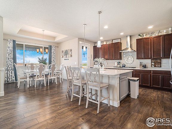 FIND YOUR OASIS AT HOME in this gorgeous 5 bed 3 bath that sits on a .24 acre cul-de-sac lot and backs to open space. Located within an hour to DIA and 25 minutes to Jackson Lake State park, this immaculate beauty includes a finished basement, bar area, billiard table, family room fireplace, office, 2 bedrooms w/private vanities, walk-in closets & storage galore. On the main level you will find grand ceilings, another living room fireplace, gourmet kitchen, center island sink w/seating, quartz counters, gas cooktop, built-in oven and microwave, pantry, 2 more bedrooms, guest bath, primary bedroom w/luxury 5 piece bath, a spacious laundry/mudroom PLUS a finished oversize garage. Soak up the fresh air on the East facing covered patio, complete with a custom BBQ grill, firepit, privacy fence & landscaped back yard. New roof (Class 4), new gutters, 50 gallon water heater, central air, whole house humidifier, fiber optic internet, ONE OWNER- a true small town gem! No Metro District.