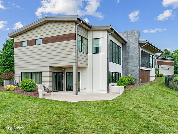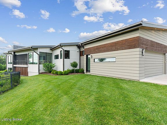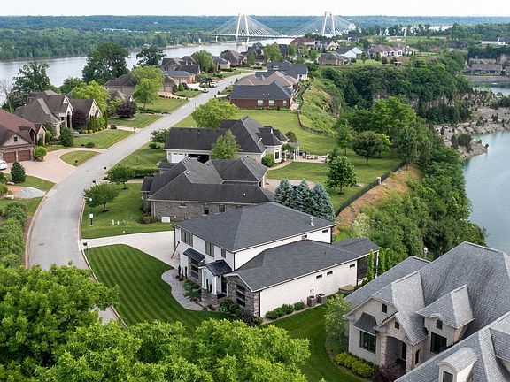 The VIEWS! That is one way to describe this home. Come and Discover this exquisite Contemporary home nestled within the highly sought after Quarry Bluff Estates Community. Spanning over 4200 Square Feet this home boasts 3 Primary Suites, one on the first floor and two in the finished Walk-Out Basement. The Gourmet Kitchen is fully equipped with top-of-the-line Miele Appliances including separate Freezer, Coffee maker and a second oven, a Huge Island, Storage galore and the Views are Spectacular! The Owners Suite has a full wall of windows that overlook the Beautiful Blue waters of the Quarry with 60+ feet of Rock Walls and Nature. The Luxurious On suite Bathrooms feature heated floors, Granite Countertops and a Soaking Tub Connected to a huge custom closet. The Screened Patio and Dining Room also include the same beautiful views. The Basement features a Wine Closet, Family Room, an ensuite bedroom and a Work-Out Room with an ensuite. Both with sliders out to a cozy Patio. The community Offers 2 Beautiful Blue Lakes, 3 Beaches, Tennis/Pickleball Courts, Clubhouse & Pool. Located just Minutes to the East End (Lewis & Clark) Bridge into Prospect Ky on Interstate 265. Come and Experience the Beauty of this home in Quarry Bluff.