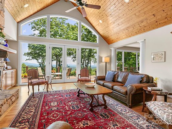 Welcome to your dream home in Champion Hills! This exquisite residence offers 2.68 acres of unparalleled privacy and breathtaking, unobstructed panoramic Northeastern views of the majestic Blue Ridge Mountains. Experience main-level living with a spacious floor plan that seamlessly extends to exceptional outdoor areas. The home has vaulted ceilings with tons of natural light and a partially open layout, ideal for both serene relaxation and vibrant entertaining. The lower level is a haven for guests and family alike, featuring three well-appointed guest suites, a cozy family room, and a wine room—perfect for hosting memorable gatherings. Nestled within a prestigious golf community, this property provides not only stunning natural beauty but also access to exceptional amenities, including Tom Fazio's "Mountain Masterpiece" golf course, and a welcoming neighborhood. Plus, it's only 8 minutes from the charming shops and dining of downtown Hendersonville. Come see what makes it so special!