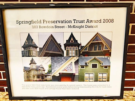 Completely renovated w QUALITY finishes - this home is move in ready. Springfield Preservation Trust Award Winner. Fully handicap accessible 1st floor w entry ramps, Master Bedroom w walk-in/roll-in shower, remodeled 1st and 2nd floor kitchens, Granite Counter tops, 6-burner Gas stove, Shaker Cabinets, 4 Original Marble fireplaces, gorgeous wood floors. Multiple egress to 2nd & 3rd floor bedrooms. Grand Entry Hall w Original Woodwork. 2nd floor boasts 3 bedrooms, an office, a 2nd Kitchen + 2nd living room, 2 Full Baths, plus walk-in closets. 3rd floor features 5 bedrooms, laundry, and another Full Bath. 2 Brand new heating systems (APO) = 2 Gas and 2 Oil interchangeable for price fluctuations in these fuel sources. Basement is insulated, heated, and structurally sound with 10' ceilings. The Carriage House has nice high ceilings + 2nd floor for addl dry storage or meeting space.. Garden, patio w/ Canopy Lites, and an Outdoor sink and BBQ area.Mature landscaping. Sale includes two lots.