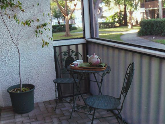 First floor, sunny home has been totally remodeled from floor to ceiling. Just steps from the pool and walking trail. Tile floors throughout. Living/dining room has a lovely, private view. Trendy black and white kitchen with built in eating/working area with extra outlets, pull out organizers in cabinets for storing small appliances, and tract lighting. New cabinets in kitchen and bathrooms have matching granite counters. Tiled baths have new faucets, plumbing and water heater. Spacious master bedroom can accommodate area for sitting and an exercise machine. Master bathroom has built in vanity and glass shower door. Second bedroom can be used for guests, a den and/or an office. It has a built in desk with extra outlets, Murphy Bed, book shelves and lots of storage. The beautiful pavered screened patio has ceiling fans for year round use. This condo makes living in PGA peaceful as well as beautiful and secure.