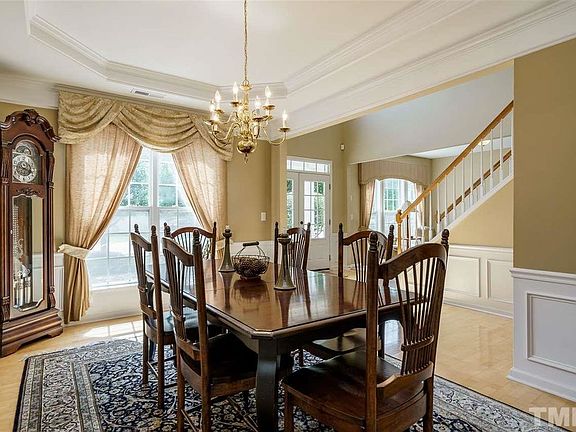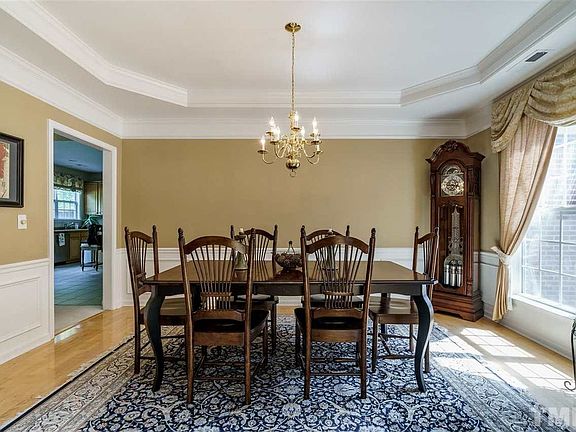 Beautifully upgraded & impeccably maintained, former model with designer selections throughout! Excellent location close to RDU, RTP, shops+dining. 2-story foyer. Spacious family room w/large windows & FP, open to chefs kitchen w/center island & breakfast area. Private 1st fl office. Formal dining rm. Master suite w/vaulted ceiling & sprawling ensuite bath w/oversize vanity,sep shower/tub+2 Lg WICs. 3 add Bds+convenient laundry rm on 2nd fl. Private, fenced yard w/wooded view+patio. Community w/amenities!