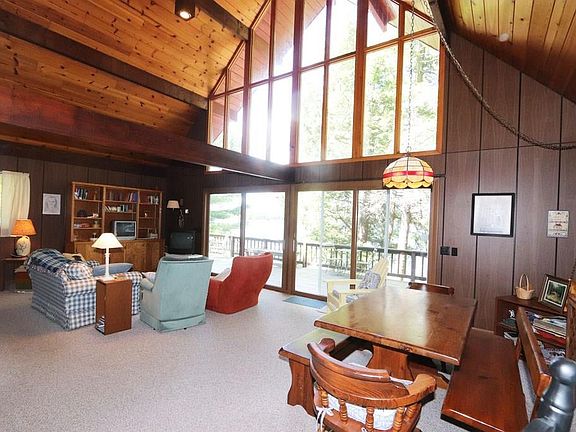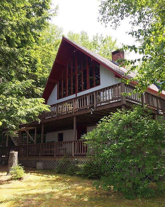 A charming year-round chalet on Branch Lake! Enjoy one of Maine's most desirable glacial lakes from your large deck or dock. The home sits on 3.52 acres with 273' of water frontage. Large open living/dining area with cathedral ceilings, wood burning fireplace, a wall of windows and Two 8 foot sliding glass doors onto the front deck. 2 large bedrooms and full bath with double vanity on the first floor. Large sleeping loft and Master Bedroom on the second floor with views of the lake. Half bath and laundry in the walk-out basement. Located between Bar Harbor and Bangor.
