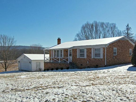 This brick ranch on .94 acre in a country setting at the end of Benedict Lane is compact and easy to maintain. Built in 1979, the electrical work has been upgraded by the present owner. A screened porch affords sweeping mountain views. The detached double garage and two outbuildings provide plenty of room for storage, and the spacious yard lends itself to gardening and outdoor activities.