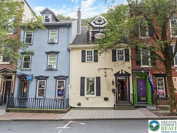 Incredibly rare opportunity in the heart of historic Jim Thorpe! This mixed-use property features a leased ($800/mo) commercial storefront on Broadway that provides supplemental monthly income, paired with an absolutely stunning 3BR 2.5 bath residence accessed via Race Street. Enjoy the convenience of a 2-car off-street parking pad located beneath the large composite deck. Inside the residence, an open concept LR greets you with cathedral ceilings, skylights, electric FP, and deck access, all open to the kitchen with beautiful black countertops and cabinets, with appliances included. The main floor also offers a laundry room, half bath, and an incredible master suite with a striking stone accent wall, double vanity, and stall shower. HW floors run throughout the home except in the full baths. Upstairs, find a BR with the only balcony overlooking Broadway, a 2nd full bath, and a 3rd BR currently used as a den or office with a window overlooking the LR. Additional features include heated gutter guards, a wifi sound system throughout the home, gas HW heat, and mini split AC. This unbeatable location places you steps from Broadway’s charming shops, restaurants, and attractions, while nearby landmarks such as the Asa and Harry Packer Mansions, Mauch Chunk Opera House, Lehigh Gorge State Park, and the Lehigh Gorge Scenic Railway offer endless opportunities to enjoy the area’s history, culture, and outdoor recreation. A truly unique offering combining income, lifestyle, and luxury!