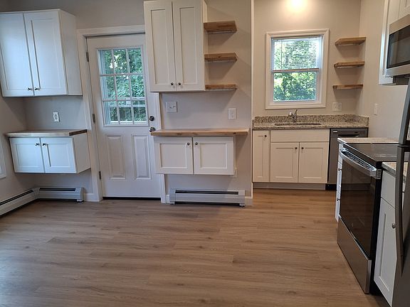 In a newly rebuilt property, this second level apartment comes with new stainless steel appliances in an open kitchen-dining-living area, wood & luxury vinyl floors, and 2 porches in a convenient North End location. Granite & butcher block counters complete the kitchen. The bath has a 4-foot shower, 3-foot vanity & storage shelves. Bedrooms come with ceiling fans. Your own efficient Navien furnace produces domestic hot water and heat, fueled by natural gas. The 5-unit building has new sprinkler and fire alarm systems for your safety. A unit-dedicated Maytag washer & dryer is located in the basement laundry room. The property offers off-street parking along with a common grilling area. Access to the unit is by interior and exterior stairs. Everything in this unit is brand new! Renter is responsible for utilities -- natural gas, electricity, Internet/TV. The entire property is NON-SMOKING, including residents & visitors. One year lease. Owner covers water and driveway snow removal.