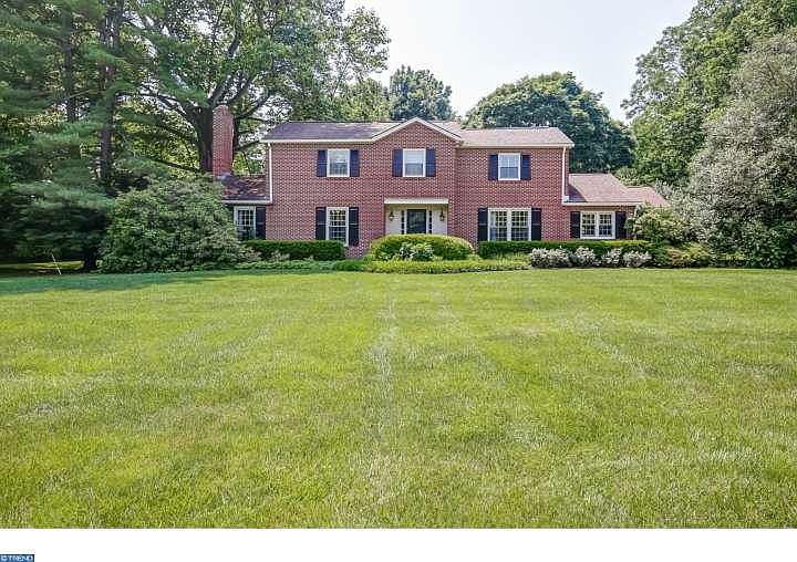 Classic brick 5BR, 3.5BA Colonial with fabulous formal step down living room of grand proportions, and large formal dining room with built-in display cabinet. Beautiful gleaming random width pegged hardwood floors throughout the most of the first floor. Terrific entertaining flow created by bright vaulted sunroom with skylights joining formal living room and handsome family room. Rich mahogany paneling and massive dentil molding surround the large open stone fireplace. The Kitchen has been completed renovated with custom cabinets, high end stainless steel appliances, large center island and breakfast room. The 5th bedroom on the 1st floor has new carpet and could be used for private nanny quarters/in-law suite. A new roof was installed in March, 2017. The level 2-acre property has magnificent mature trees and your own swimming pool! Located in a private small community in the heart of Greeville. Rendering & proposal for a 2 car garage is available.