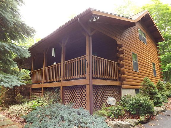 NO MORE SHOWINGS UNDER VERBAL ACCEPTANCE. This True Log Home Beckons You In With It's Large Relaxing Covered Front Porch Then Welcomes You Into An Open and Airy Floor Plan. Features Include a Spacious Living/Dining Room with Oak Floor, Beamed Cathedral Ceiling, Propane Wood Stove and Sky Light, Eat In Kitchen Has a 2-Stool Island, Maple Cabinets, Pantry, Newer Stainless Appliances, Sky Light and Access to the Screened Porch, 3 Bedrooms, 2 Baths, 2-Car Garage,Unfinished Basement for Added Living Space And Almost 2 Secluded Acres. All Available In A Private Lake Community.