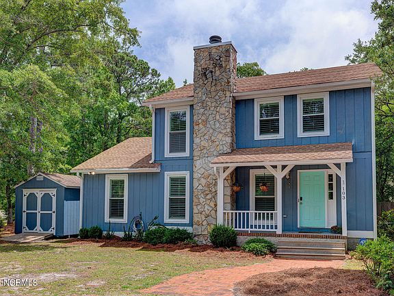 With larger lots, mature trees everywhere, favorable school district, and no HOA, Stoneybrook is one of Middle Sound's most coveted neighborhoods. 103 Cale Ct sits on a ½ acre, corner lot which offers a semicircle driveway for easy in & out, a large inground swimming pool, privacy fence and beautiful live oak shading the back deck. Inside, you'll find a fantastic, updated kitchen, with center island, sleek Kitchen Aid black stainless appliances, white shaker cabinets with soft close hinges, tile backsplash and quartz countertops. Updated hardwoods throughout downstairs, LVP upstairs, tiled fireplace, custom sliding barn doors for the office, plantation shutters, recessed book shelf, and wet bar in dining closet are a few other unique features that stand out here. Home offers 3 bedrooms and 2 full baths upstairs, while main floor has the living room, dining room, kitchen, walk-in pantry, office, and laundry with ½ bath. Covered front porch entry, with raised rear deck and hot tub which overlook the huge, private swimming pool. This one has a ton of updates and sits close to the ICWW and Howe Creek, which separates Landfall and Middle Sound Loop. No city taxes.