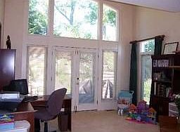 Fabulous & Unique! Architecturally delightful! Walls of windows! 2 story great room w fireplace & marble flooring! Open floor plan! Wooden beamed pillars! Beautiful moldings! Gleaming hardwood floors! Recessed lighting throughout! Eat In Kitchen w window seating! First floor laundry! Expansive Master Bedroom Suite w double doors & balcony opening to great room below! Walk in closet & full bath! Large brick patio with access from great room and laundry room! Fully gated yard! Beautiful landscaping!