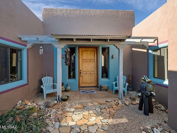 Enjoy the beauty of Rio Rico from this one of a kind home filled with Southwestern charm both inside and out. Unique details abound from the construction of insulated concrete forms to the interior with tin ceiling and exposed beams. The home has 3 bedrooms, 2.5 baths, and an office. Take in the views from the covered back porch and paths on the property. Plenty of storage and parking in the 800 sq ft garage. Let your creativity flow from the detached 960 sq ft artist studio/workshop.