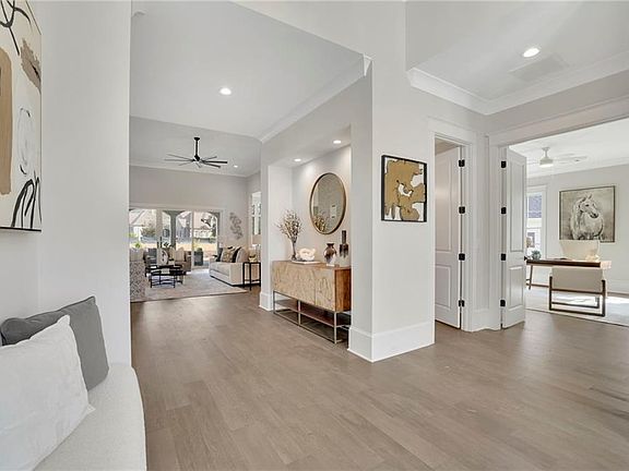 Close to everything...and socializing is a breeze on your flagstone patio! Governors Towne Club, the highly regarded and gated community has an ownership opportunity that belongs at the top or every buyer's list. The practical grace of single story living will be yours to enjoy in this appealing 4BR and 4BA ranch style home. With a location that is convenient to Avenues of West Cobb and Lake Allatoona, it is also a short commute to Atlanta. The stylish interior includes a grand entryway, an open floorplan with natural light complimented by sophisticated fixtures, neutral decor, notable ceiling styles; vaulted, tray, and minimalist flat. The gourmet kitchen with its large kitchen island features natural light, premium appliances, quartz countertops with ceramic tile backsplash and plenty of pantry space. The kitchen opens seamlessly onto the dining room and living room. The tranquil primary bedroom includes plenty of closet space with the en suite bath and all the amenities included. The right house at the right time for you!