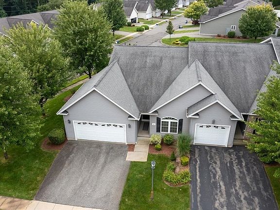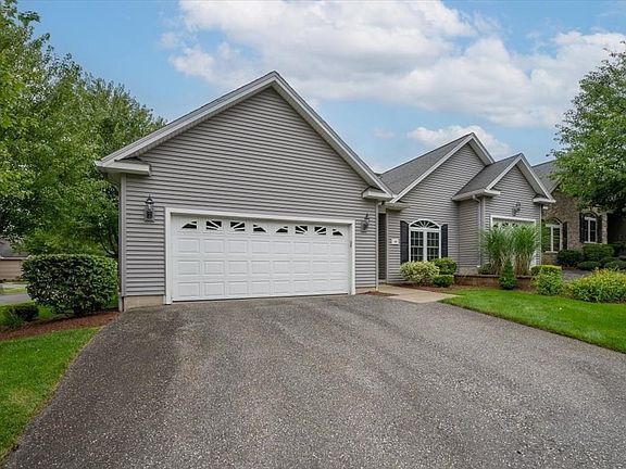 A CAPTIVATING END UNIT Garden Condo w/desirable 2 Car Attached Garage found at the highly sought after Canterbury Woods, a 55 + Condo Community with convenience to all your needs! You'll find an ideal layout for entertaining & comfortable living w/gleaming Hardwood Floors throughout. The Stunning Kitchen w/Rich Cabinetry, Granite Counters, Tile Backsplash, Stainless Appliances & Breakfast Bar is open to an inviting & spacious Dining Rm w/Cathedral Ceiling is all open to the Great Room w/Gas Fireplace w/access to the private back patio. The primary suite, a true getaway w/Tray Ceiling, Crown Molding, Walk-In Closet & Full Bath w/Tile Floors. You'll discover a sunny 2nd Bedrm w/roomy closet & hardwood floors & sparkling full guest bath. A real plus is the main flr laundry behind closet doors! An Open Rail from the 1st flr leads you to the lower level full basement offers plenty of storage space along w/rough plumbing for a future Full Bath, efficient Gas Heat & Central-Air! Just for You!