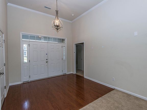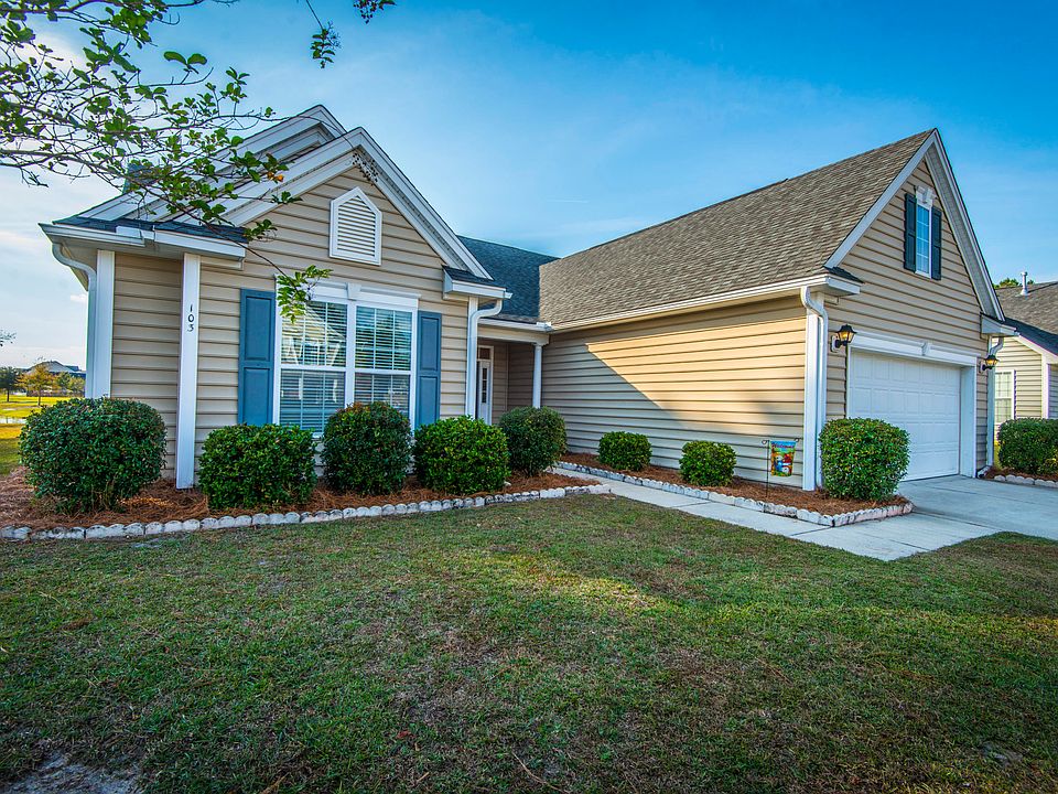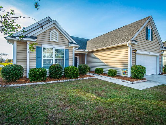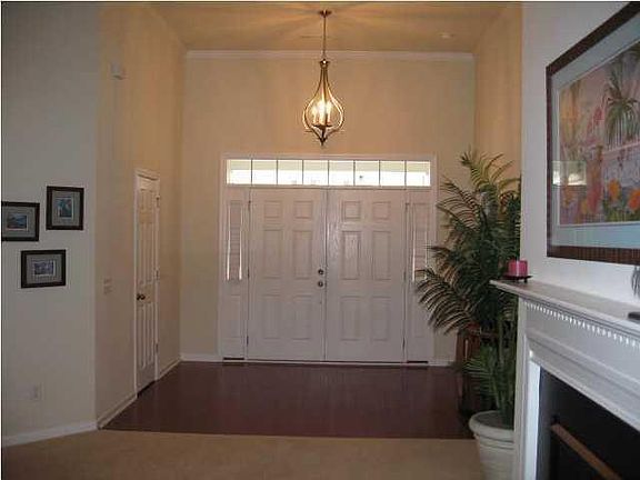 One story living in one of Summerville's prime locations; Cane Bay Plantation. Located on a quiet cul-de-sac, this home's open floor plan with tall ceilings and crown molding greets you as you enter the foyer with wood floors. Open great room with gas log fireplace is the center of the home and is open to extra large eat-in kitchen with cherry cabinets, black appliances and recessed lighting. Breakfast area in kitchen sits in a nook/bay window. Dining room is separated from great room by classic columns. There is a private office off the great room that could be an additional bedroom (no closet). Master suite offers walk-in closet and separate garden tub and shower. Upgraded high counter tops in bathroom. But the features don't stop there!There is also a screen porch overlooking pond and a 2 car garage with sink. Laundry room is off the kitchen. Come see what Cane Bay has to offer. Neighborhood shopping and schools as well as pool and play park.
