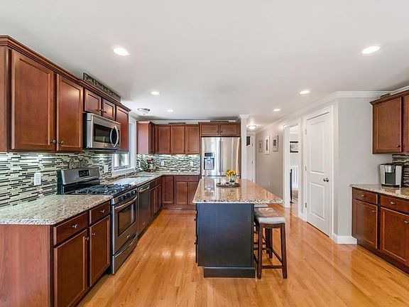 Welcome home to this stunning Hip-Roof Model Colonial home in sought after "Carriage Hill Estates". The home boasts over 2710 sq. ft. of living area spread out perfectly over the first 2 levels. An additional 849 sq. ft. of open floor plan in Walk-Out Finished Basement. First level features Crown Molding and HWF throughout. Granite/ Stainless Gourmet Kitchen with 3 seater Center Island and additional Dry Bar. Large family room, formal living room with Vaulted Ceiling and Gas Fireplace. Dining room with beautiful Wainscoting/ Chair Rail, First Floor Laundry and half bath. 2nd level features luxurious/ oversized Master Suite with His/Her WIC and Custom Built-Ins, Master Bath with Double Vanity and Soaking Tub. Additional 3 generous sized bedrooms and common bath. Exterior offers private and serene views from deck overlooking spacious back yard. Additional features include 2 Car Garage, Central Air, Remote Control Blinds in Master Suite/ Living Room, Propane Heat, and Irrigation.