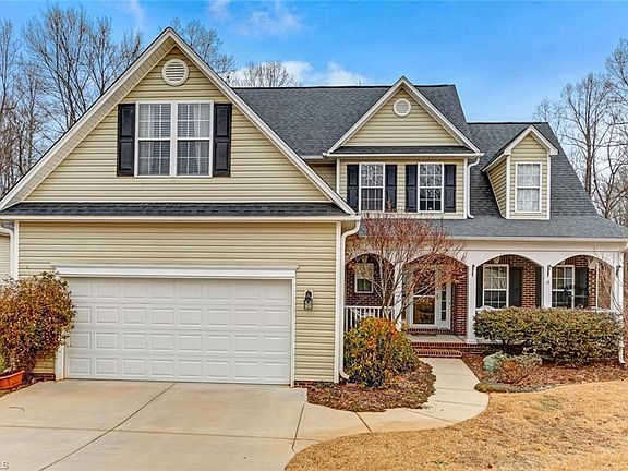 Great transitional home with open floor plan, master on the main level, full finished basement with rec room (pool table negotiable), kitchenette, full bathroom, bedroom and office. Two story living room, neutral colors in the main areas of the home, and laminate wood floors on most of the main level. Outside has a beautiful garden area, play area, storage building, deck, patio and covered front porch. Close to Burlington, Elon and Greensboro. Not to far from the highway for an easy commute.