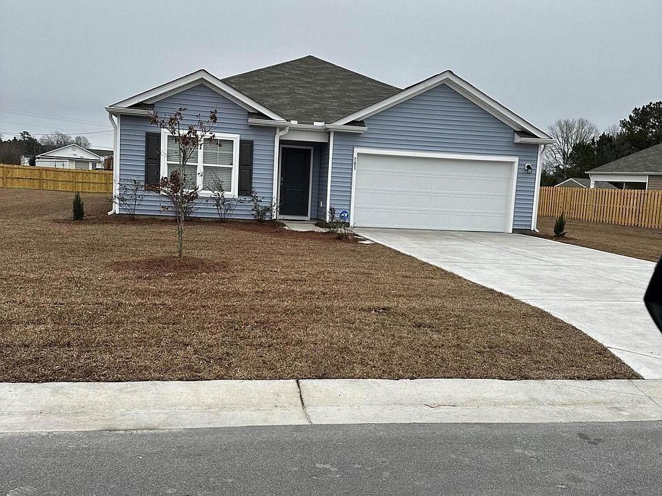 This popular ranch plan offers four bedrooms all on one level with a light and bright kitchen, dining, and family room that incorporates an open design. The kitchen has all stainless-steel appliances including a dishwasher, microwave, and electric stove. Your primary bedroom suite is separated from the other bedrooms, includes a 5-foot shower, double vanity, walk-in closet, plus a separate linen closet for additional storage. Enjoy the coastal breezes on your covered back porch. Blinds will be included on the front of the house for instant privacy and there is a 2-car garage. It gets better, this Home Is Connected! Control the thermostat, front door light and lock, and video doorbell from your smartphone or with voice commands to Alexa.