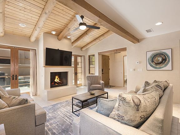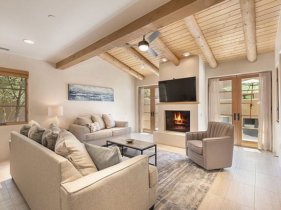 The Best of the Best in El Corazon! Extremely rare, light-filled contemporary El Corazan end unit, fully renovated with 1,999 square feet, 3 bedrooms plus an office with balcony, and 3 1/2 baths, located in the heart of the Santa Fe Plaza. Ideal for entertaining, the indoor/outdoor living experience is extraordinary with access from the great room to the private, walled courtyard with fireplace, and a modern well-appointed kitchen with top of the line JennAir appliances, which opens directly to the dining area and great room. This exceptional condo offers thoughtful separation of space, with the spacious primary suite located on the main level, complete with a large walk-in closet, fireplace, and the ultimate spa-like full bath, and two additional guest bedrooms upstairs with ensuite baths, and an office with a private balcony. Perfect as a luxury primary residence, turn-key secondary home, or a short-term rental, the amenities of El Corazon include a social clubhouse, gym, rooftop deck, onsite concierge and a gated, temperature controlled garage for the residents and guests. HOA fees include common area maintenance, roof and stucco maintenance, landscape irrigation, on site management, maintenance, and more! Luxury finishes include plaster walls, contemporary, porcelain tile throughout, 4 fireplaces total with all furnishings negotiable.