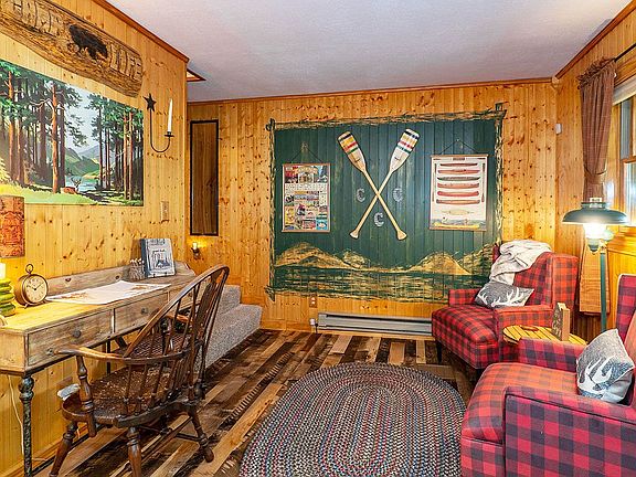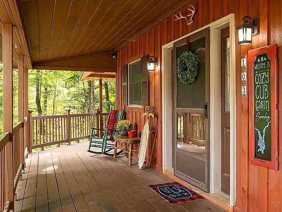 Newly RENOVATED ADIRONDACK CABIN home with 10' LAKE ACCESS & BEACH PERMIT on Great Sacandaga Lake. Enjoy the east side shoreline with beautiful western sunsets. Located an easy 1/2 mile walk from the lake, this 1,800 sq ft year-round home has 3 bedrooms, 1 bathroom and is nestled on 1 acre of wooded privacy. FULLY FURNISHED with professionally designed decor and modern quality that transports you to the perfect Adirondack cabin experience. Cabin is full of one-of-a-kind pieces, antiques and ADK themed decor. PRIVATE 1 acre acre lot surrounded by trees, located at the end of a dead end road in Broadalbin. Detached 3-car GARAGE (with electric) and paved circular driveway is perfect for all your lake toys! Wrap around covered PORCH. Updated kitchen with butcher block counter tops, stainless steel appliances, pine cabinets and adorable plaid backsplash. Rec room in the lower level includes new gas FIREPLACE insert, custom stone fireplace surround, BAR, game area, and level walk-out through sliding doors to PATIO with outdoor dining and brand new HOT TUB. Yard offers level area with room to play. Knotty pine, new rustic wood flooring, and modern finishes make this cabin stand out. Newly added large dining room with cathedral ceiling that seats 10 with room to spare, includes pass-through to kitchen and access to 2 different porches. Main-level master bedroom fits king-size bed and connects to updated bathroom through a barn door. Two bedrooms on 2nd level showcase different cabin themes. Convenient to the Town of Broadalbin, Mayfield and Northville for enjoying entertainment and dining. Approved 40 foot long dock space. 4 mi. to the Broadalbin Boat Launch. Currently operating as an Airbnb and would bring instant income. The last 4 months have produced over $26,000 in revenue. TRULY 100% TURN-KEY!