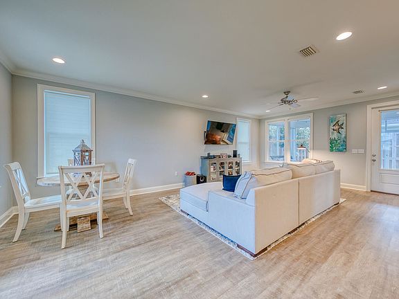 This home is in a premium location in Church Street Village and is situated in the newest phase. Quality built home by Huff Homes and seller is the original owner. This neighborhood is only minutes away to 30A beaches, Grand Boulevard and all of your day to day resources that you need! It is a 3 bedroom/2.5 bath with an open floor plan and living space. Master BR is down stairs and upstairs are secondary BRs and a loft space that can be used as an office or a secondary living space. You will love the oversized screened in back porch, and the back yard is completely fenced for privacy and pets. Upgraded finishes include 9' ceilings with 8' doors, LVP flooring, recessed lighting, granite countertops, subway tile backsplash, crown moulding, stainless steel appliances, solar shades throughout,